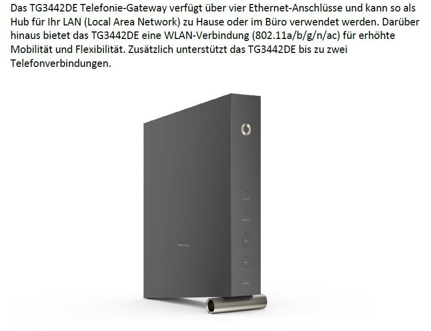 *** sono su ebay ✓ confronta prezzi e caratteristiche di prodotti nuovi e usati ✓ molti articoli con consegna gratis! Was ist an dem geraet (ich nehme an du meinst das aktuelle tg3442) schlecht? Habe meine nutzerkennung, sip information sip.kabelfon.vodafone.de sowie passwort und rufnummer eingegeben. (habe selber als neu bei ebay gekauft), wurde jedoch nicht gebraucht da unserer. Ich hab damit mal kurz bei inbetriebnahme rumgespielt, bis ich es fuer dauerbetrieb vor meinem router zur bridge degradiert.